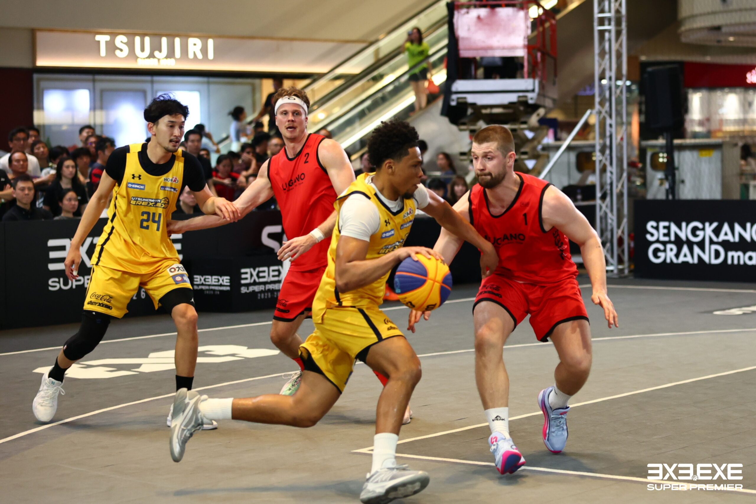 FINALの決勝の相手は、日本のUTSUNOMIYA BREX.EXE(宇都宮ブレックス エグゼ)。序盤から一進一退の攻防を繰り返す互角の戦い。しかし、試合残り5:40の場面で、LUGANOのブライアンがファウルを受けながらレイアップを決めてバスケットカウント。さらに次のプレーでティボーが値千金となる2ポイントを決め、14-10とリードを広げる。なんとか巻き返しを図りたいUTSUNOMIYA BREX.EXEだが、逆転までは届かず、最終スコア21-15でLUGANO(ルガーノ)が優勝を飾った。3x3.EXE SUPER PREMIER初年度にLAUSANNE(ローザンヌ・スイス)のメンバーで出場していたウェスター・モルテニは、個人2度目の優勝となり、また初年度にTORONTO PATRIOTSで出場していたビクラムジット・ギルにとっては2度目の挑戦で初優勝となった。