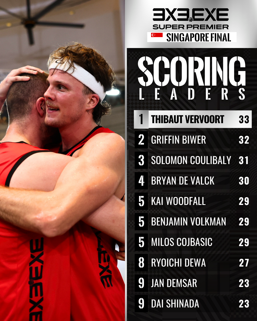 3x3.EXE SUPER PREMIER 2025-26 SINGAPORE FINALが、本日3月29日(日)にシンガポールの「SENGKANG GRAND MALL」会場にて行われ、ゲストチームとして参戦していたスイスのLUGANO(ルガーノ)が優勝しましたため、お知らせいたします。