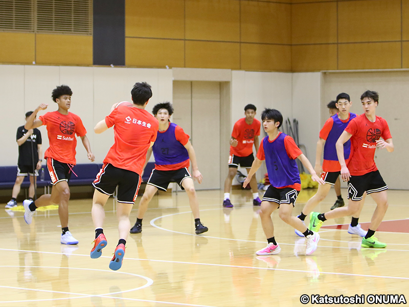 ロスターの平均身長は189.2センチ。マクミランアレックス(沖縄県立沖縄水産高校)、白谷柱誠ジャック(福大大濠)、今野瑛心(仙台大学附属明成高校)といった190センチ台が8名並ぶが、2メートルを超えるビッグマンは不在。片峯HCは今回の選考基準について問われると、次のように答えた。