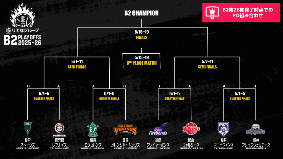 第28節終了時点の“仮想”プレーオフ組み合わせ…B2は残り8試合、シード逆転の可能性も