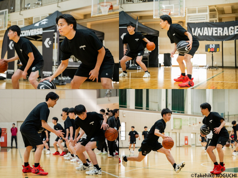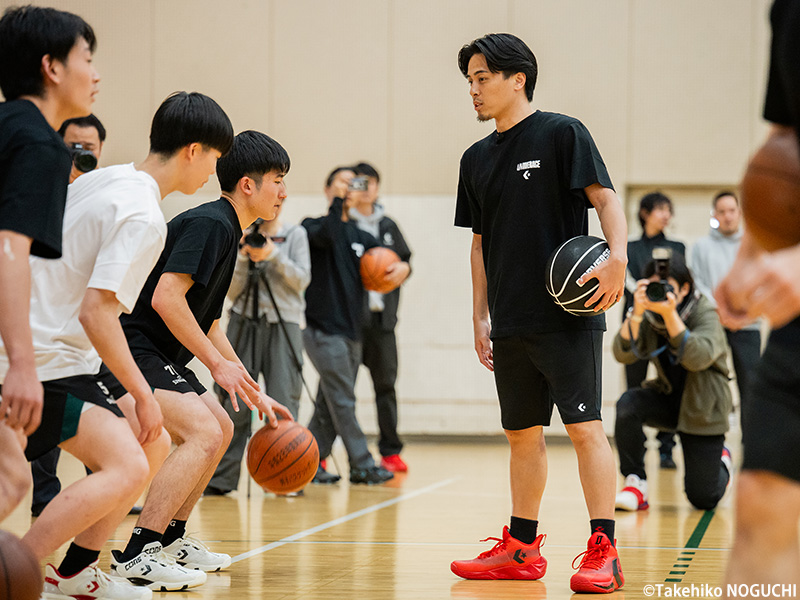 3月23日、「UNAVERAGE SKILL LAB supported by CONVERSE」が船橋市立船橋高校(千葉県)にて開催され、富樫勇樹が市船橋高の男女バスケットボール部員たちにクリニックを行った。