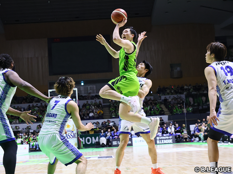 第29節終了時点で、代名詞の3ポイント成功率は34.0パーセント。開幕前に掲げた目標の「50パーセント」には遠く及ばないが、ドライブやミドルレンジを織り交ぜた多彩なフィニッシュで得点を重ねている。平均19.1得点はリーグ5位と、日本人選手としてはトップに位置する好成績だ。
