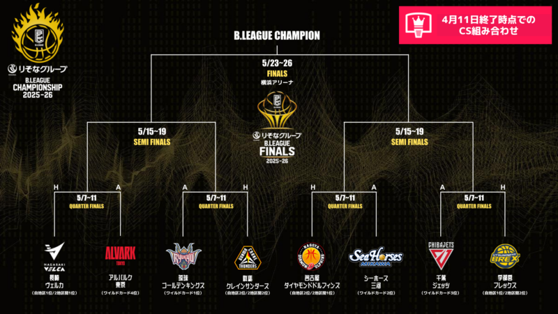 4月11日、各地で「りそなグループ B.LEAGUE 2025-26 SEASON」第31節GAME1が行われた。東地区2位が入れ替わったほか、ワイルドカード1位の座も入れ替わり、チャンピオンシップシード順に動きがあった。