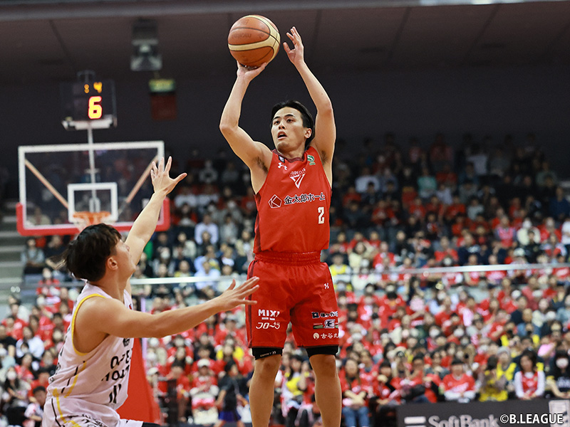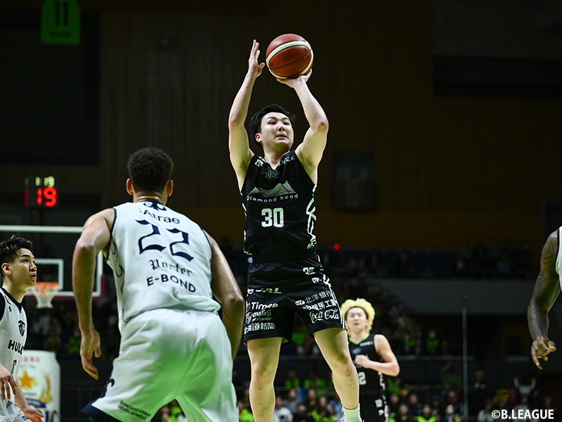 そして今シーズン、この豪華な顔ぶれに続く歴代5人目の達成者となったのが北海道の富永だ。Bリーグ参戦1年目から圧倒的なシュート力を発揮し、日本人最速となる53試合目で大台に乗せる異例のペースで得点を積み重ね、現在は1040得点まで数字を伸ばしている。