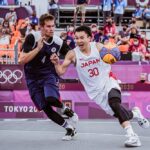 東京オリンピックから正式種目に採用された3x3。男子日本代表は2勝5敗の予選ラウンド6位で決勝トーナメントへ進出し、準々決勝でラトビアと対戦したが、18−21で敗れた。