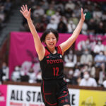オリンピック代表が篠崎や永田のドライブで得点を重ねると、オールスターズは吉田舞衣(シャンソン化粧品シャンソンVマジック)や小池遥(シャンソン)がシュートを決め、得点の奪い合いに。さらに、オールスターズは馬瓜エブリン(トヨタ自動車)のミドルシュートに加え、篠崎と同じく現役引退を発表している三好南穂(トヨタ自動車)の2ポイントでリードを拡大。