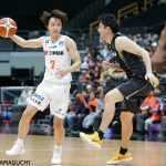 三河は、第1クォーターから金丸晃輔が4本の3ポイントをマークする活躍を見せ、27-19と先行する。続く第2クォーターは金丸の連続3ポイントで先制すると、ダニエル・オルトンも得点を伸ばし、一時点差を20点に。守っては新潟の攻撃を計13点に抑え込み、49-32でハームタイムを迎えた。