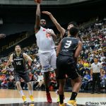 第3クォーターは拮抗したが、比江島慎、桜木ジェイアールを中心に相手を上回る計22点を積みあげる。21点リードでスタートした第4クォーターも橋本竜馬、松井啓十郎、西川貴之の3ポイントなどで攻撃の手を緩めることなく、96-72で試合終了。金丸の7本を筆頭に計14本の3ポイントを沈めた三河が、24点差で新潟を退けた。