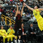 試合はやや重い展開となったが、開始1分59秒に宮澤夕貴が先制点をマーク。梅沢カディシャ樹奈と渡嘉敷来夢も続き、開始5分13秒時点で8-0と試合の主導権を握った。対するトヨタ自動車も河村美幸が開始5分36秒に先制点をマーク。8-2とすると、その後は三好南穂と馬瓜ステファニーも得点し、15-8で終えた。第2クォーターも渡嘉敷、宮澤の得点で開始2分26秒時点で22-10っと点差を広げると。その後はリードを広げ、36-23で前半終了。