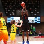 8年ぶりの栄冠を狙うトヨタ自動車 アンテロープスは、中村優花に先制点こそ許したものの、馬瓜エブリンや三好南穂、安間志織がスコアを伸ばし、第1クォーターを27-18と圧倒した。対する“女王”ENEOSは、第2クォーターで徐々にリズムを掴み始める。宮崎早織がゲームを作ると、宮澤夕貴が3ポイントシュートを立て続けに沈める。しかし、トヨタ自動車の馬瓜ステファニーや三好が粘り強く加点され、リードを奪えず、41-47で試合を折り返した。