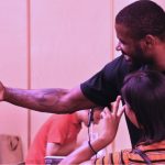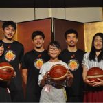今シーズン90本以上の3ポイントシュート成功を目指す安藤周人は、ノリノリでドルファミの皆さんとポーズ。