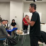 イベントの後半は、いよいよB1リーグ展望に突入。ここからは各々が各テーブルで、あるいは会場全体にぶつけ合う激しい展開に。西地区の展望では「琉球(ゴールデンキングス)の1強!」、「中地区から移動してきた名古屋(ダイヤモンドドルフィンズ)も面白い」などの意見が飛び交った。田村氏は、B3から最短でB1のステージに上がってきたライジングゼファー福岡を挙げ、「B1でも旋風を巻き起こして、西地区をかき乱してほしい」とコメント。「大阪エヴェッサにもがんばってほしい」と自身の地元クラブへもエールを送った。