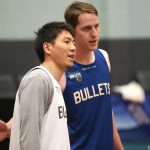 6月中旬からミニキャンプに参加する比江島(右は元NBA選手のベアストウ)[写真]=Getty Images