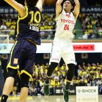 チーム最多の30分58秒コートに立った田中大貴は、5投中4本の3ポイントを決め切るなど14得点に2リバウンド6アシストをマークし、勝利に貢献。シューティングガードながらプレーメイクも難なくこなし、プルアップやキャッチ&シュートを駆使して長距離砲を何度もリングへ突き刺した。