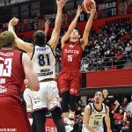2月8日の横浜ビー・コルセアーズ戦、この日はADIDAS SPECIAL DAYと銘打たれて、A東京のメンバーは真っ赤な3rdユニフォームを纏って戦った。試合は第2クォーターに一気に突き放し、後半に入ってもそのリードを広げて92−73のスコアで大勝。チームは勝率で東地区首位の宇都宮ブレックスに並んだ。