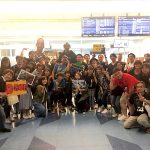 ブースターと一緒にサビート選手を空港で見送りする和田氏(写真はご本人提供)