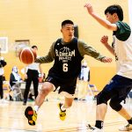 明治大学4年生の植松義也も最後の10名に選抜され、インパクトを残した選手の一人だ。190センチを生かしたディフェンスで強さを発揮し、3ポイントシュートなどアウトサイドでプレーする力も兼ね備える。加えて即席チームの中心としてコミュニケーションを取り、仲間をリードする姿もあった。