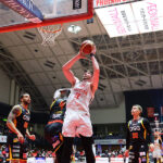 後半はライアン・ロシターを欠く中、第3クォーターで26-12と突き放すと、最後の10分間は若手選手を起用しながら87-62と25点差で3連勝。サイズが15得点13リバウンドを挙げたほか、ジョーダン・テイラーが13得点7アシスト、吉井裕鷹が12得点、ロシター、アレックス・カーク、小酒部がいずれも10得点を記録した。