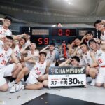 2連覇達成後はチーム全員で喜びを爆発させた[写真]=B.LEAGUE