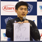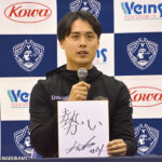 最後には決意を色紙に書いてそれを披露。松崎は今のチームの勢いを自分が加入することでより加速させたいという意味を込めて「勢い」、平岡は上手くいかない時や苦しい時でも常に自分に打ち勝つ意味を込めて「勝つ」と記した。