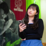 スマホを片手に悩む渡邉さん
