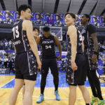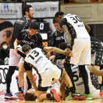 劇的な勝利を果たし、西田を中心に広がる歓喜の輪 [写真]=B.LEAGUE