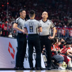 上田 ここ数年のFIBAが目指す判定技術の傾向として「ケイデンス・ホイッスル」という言葉があります。レフェリーが使う言葉で「ファウルの絵ができてから笛を鳴らす」という表現があり、意味は観ている側からも、ファウルだと認識できるタイミングまで待ってコールしていこうという心がけです。その背景は、ファウルではないフィフティー/フィフティーのコンタクトなどではプレーオンにするなど、むやみにゲームを止めすぎない目的からです。そのため今後国内でFIBAが示すケイデンスの傾向が浸透していくと、笛が鳴るのが遅いと感じる場面があるかもしれませんが、FIBAが目指す世界的な傾向の技術だと認識していただければと思います。