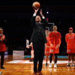 新井監督は始球式にも挑戦したが、3度のフリースローはどれも失敗。最後の一投はリングで3度バウンドしたが、やっぱり決まらず、その場で崩れ落ちた。始球式後に取材に応じた指揮官は、「昨年に続き決められなかったけど、楽しかったです」と話し、「最後に入らないっていうのが自分らしいね」と笑顔を見せた。
