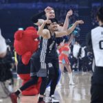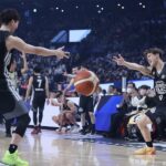 また、B.WHITEは今シーズン限りの引退を表明している桜井良太(レバンガ北海道)が2本の3ポイントを決めて存在感を放つと、3ポイントを決めた選手たちは、藤井祐眞(川崎ブレイブサンダース)を筆頭に比江島のセレブレーションを次々と披露。第1クォーター終盤には吉井裕鷹(アルバルク東京)がダンクや3ポイントで連続得点を挙げると、沖縄出身者の山内盛久(三遠ネオフェニックス)と岸本が激しい得点の奪い合いを見せ、32-34とB.WHITEがリードを奪う。