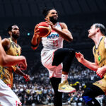 今村佳太、ジャック・クーリー、岸本隆一の連続得点で8-0のランから試合をスタートした琉球。先発ビッグマンのアレン・ダーラムも3ポイントシュートやジャンパーで追撃し、24-16と琉球が8点のリードをつかんで最初の10分間を終える。