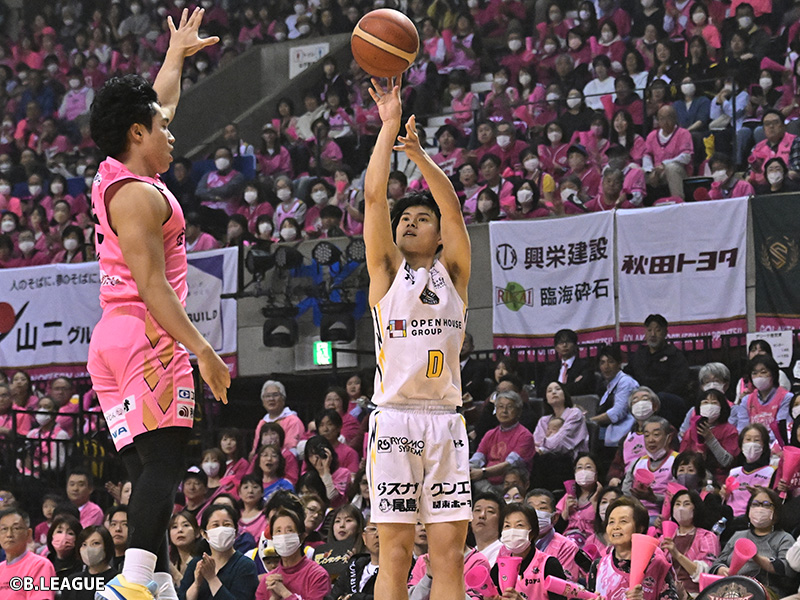 群馬は敵地のCNAアリーナ☆あきたで秋田ノーザンハピネッツと激突。第2クォーターに辻直人らがテンポ良く3ポイントシュートを沈め、48-38と10点をリードする。第3クォーターでも群馬は勢いを落とすことなく、ヨハネス・ティーマンの“3点プレー”などで点差を維持。最終クォーターでは1ケタ点差まで詰め寄られる場面もあったが、細川一輝の3点弾で逆転は許さず。最終スコア82-71で群馬が勝利をつかんだ。