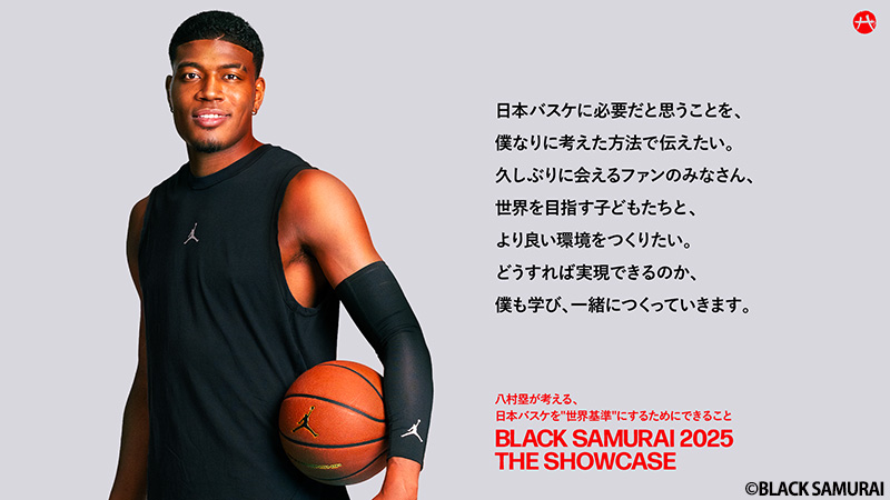 八村は「BLACK SAMURAI 2025」の活動を通じ、国内の中高生を対象とした育成キャンプ「THE CAMP」や、指導者向けプログラム「Phil Handy Master Class」などを展開する予定だ。今回発表の「THE SHOWCASE」では、その選抜メンバーによるスペシャルマッチが行われる。