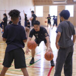 指導面では、大阪U15の仲剛士アシスタントコーチが「大前提として、バスケットボールを『楽しく』やってもらうことを一番に考えています。ミスを注意するのではなく、チャレンジしたことを褒める。シュートが決まっても外れても、褒めたり、細かいアドバイスをしたりすることで子供たちの成長スピードは速くなります」と指導方針を説明。