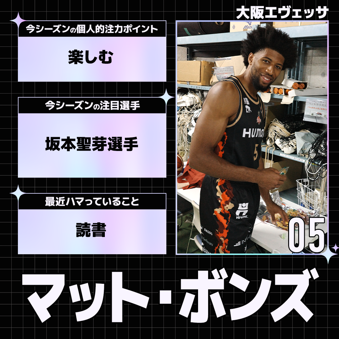 りそなグループ B.LEAGUE 2025-26 SEASONの開幕を目前に控えた選手たちにアンケートを実施。各選手から個性あふれる回答が届きました。今回は大阪エヴェッサの選手たちの回答を紹介します。