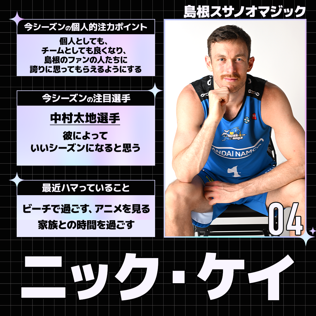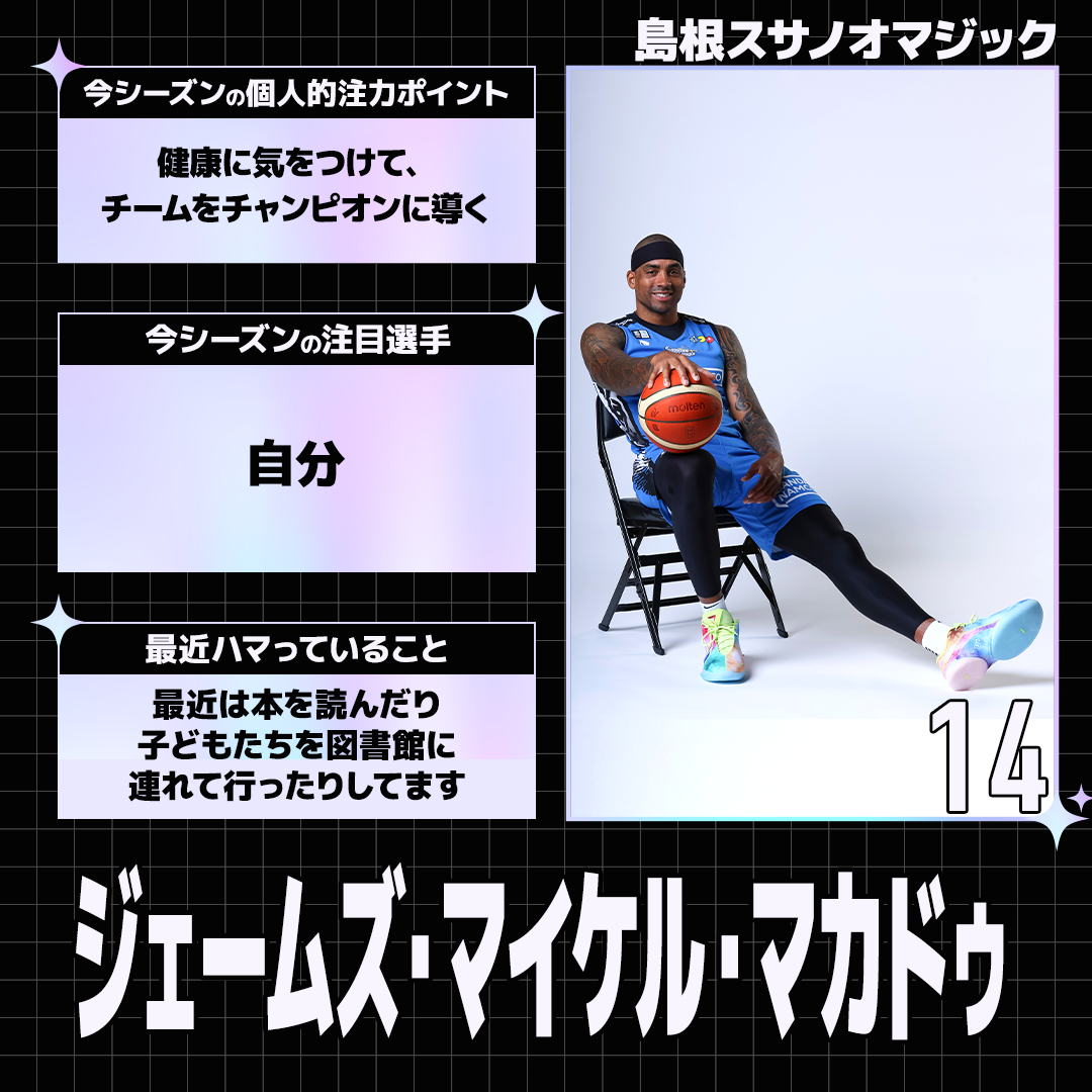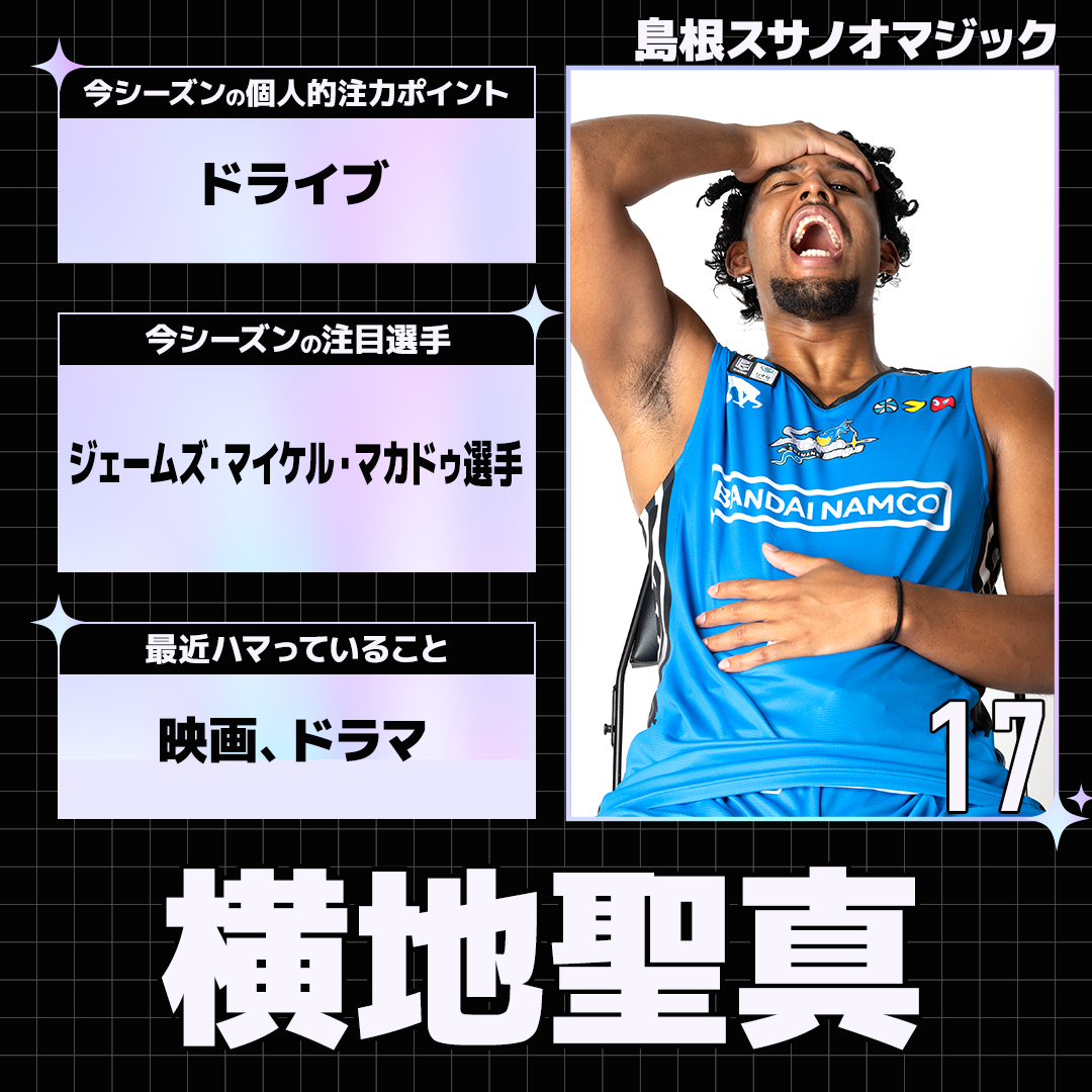 りそなグループ B.LEAGUE 2025-26 SEASONの開幕を目前に控えた選手たちにアンケートを実施。各選手から個性あふれる回答が届きました。今回は島根スサノオマジックの選手たちの回答を紹介します。