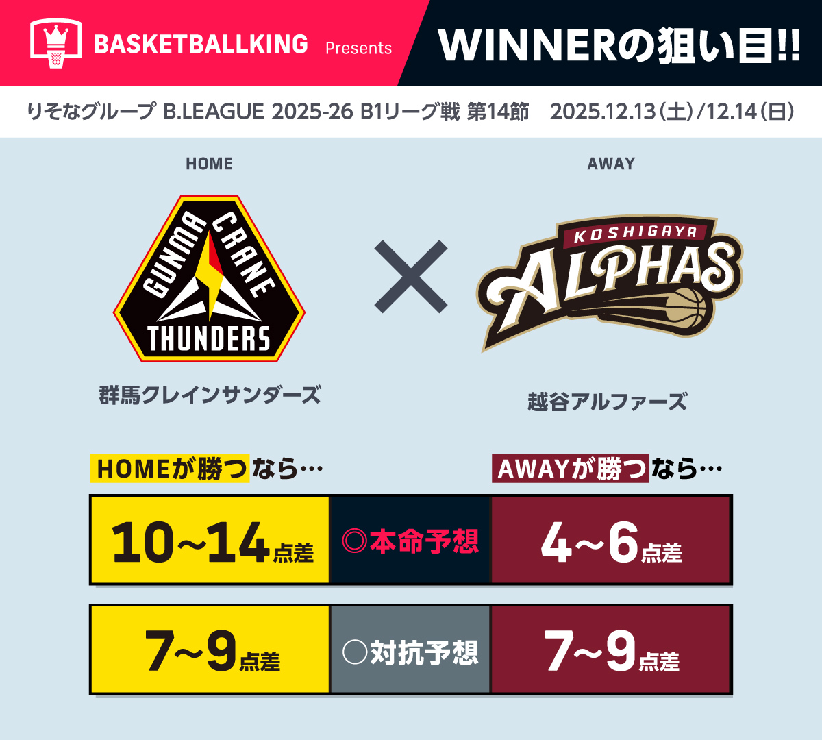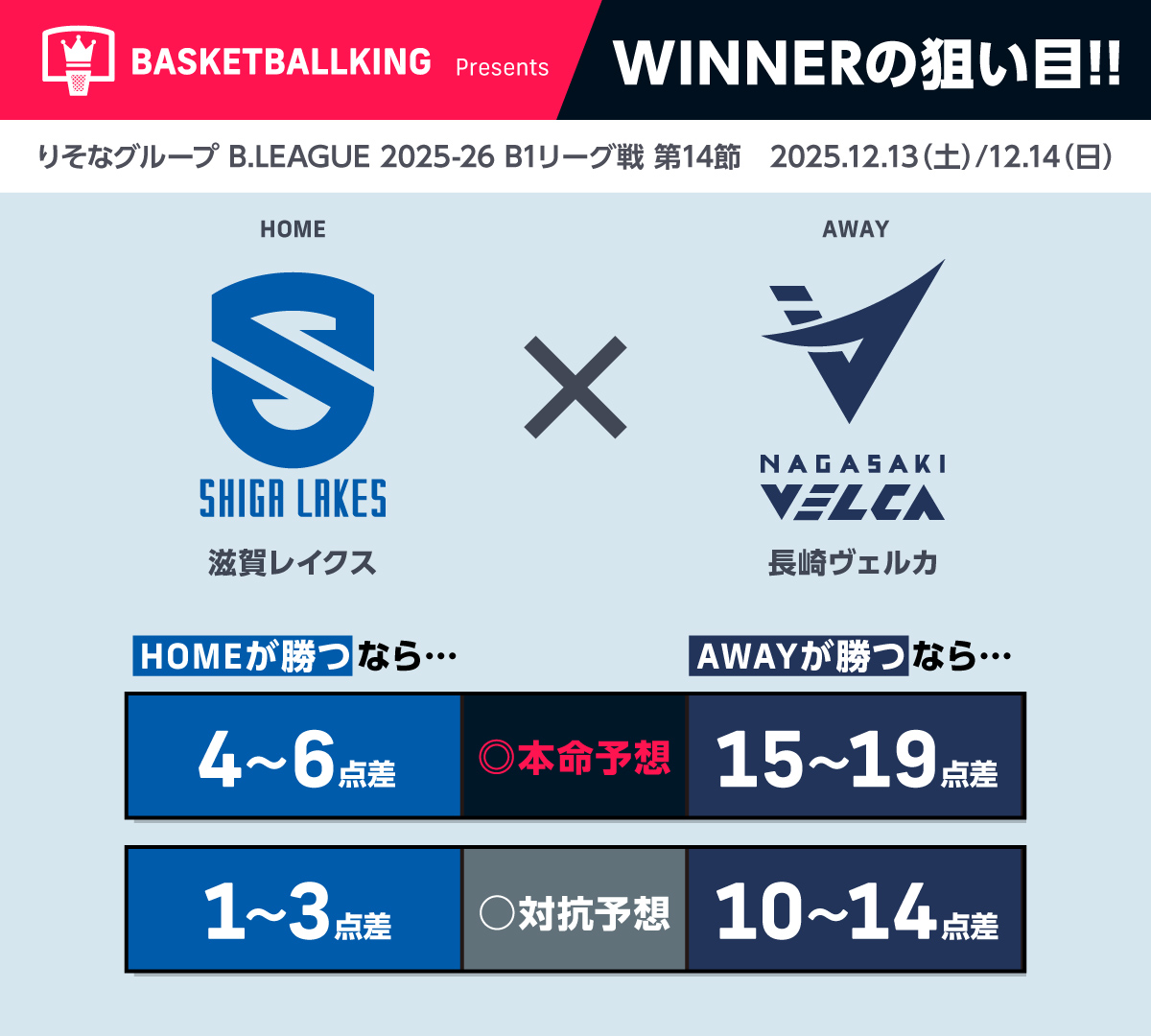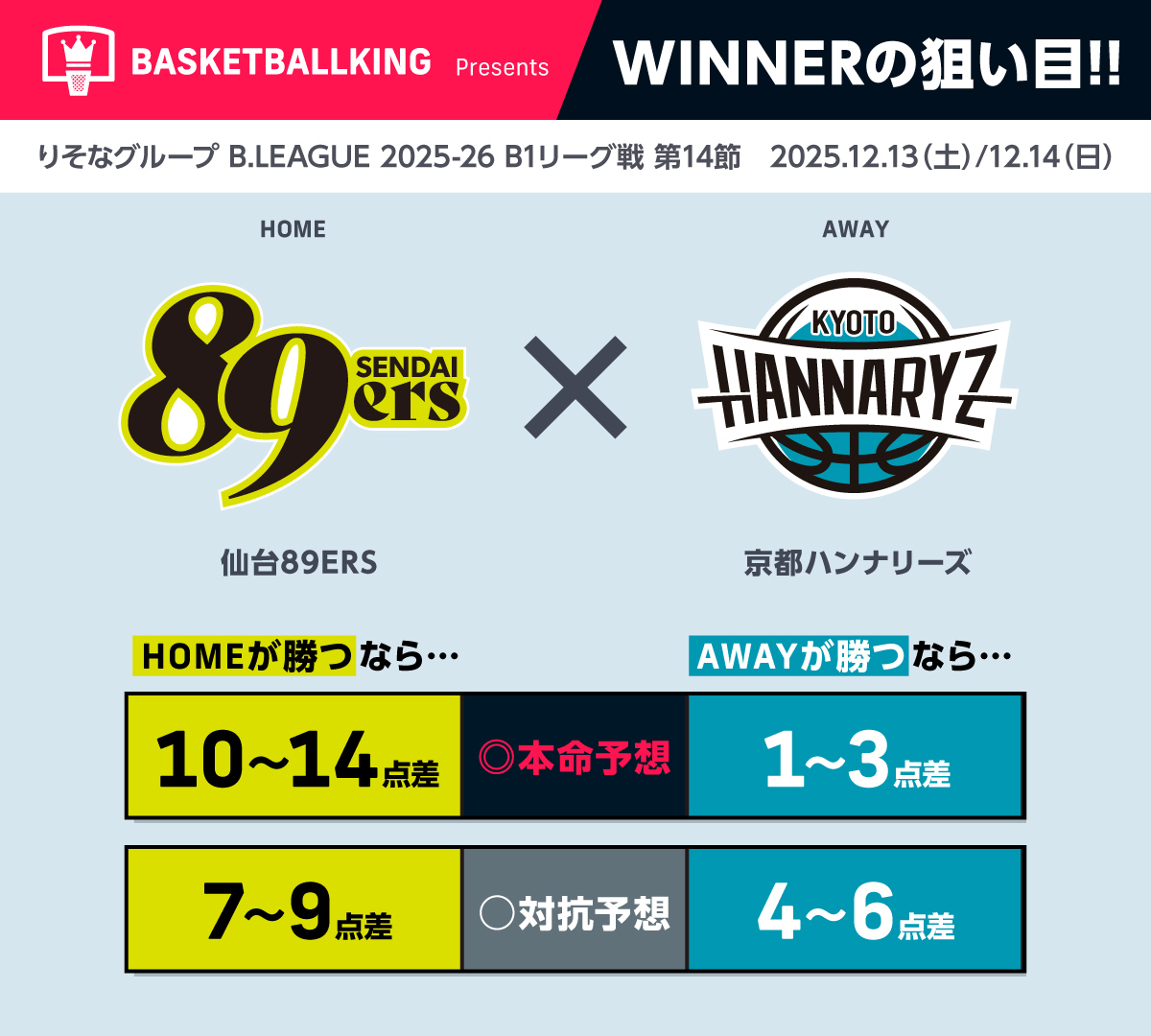 りそなグループ B.LEAGUE 2025-26シーズンもスポーツくじ『WINNER』が販売中だ。本記事ではバスケットボールキング編集部がB.LEAGUE注目カードの試合結果を予想! 参考にしていただくも良し、アナタだけの独自予想で当せんを狙うも良し。スポーツくじ『WINNER』でB.LEAGUEをさらにハラハラ、ドキドキしながら楽しもう!