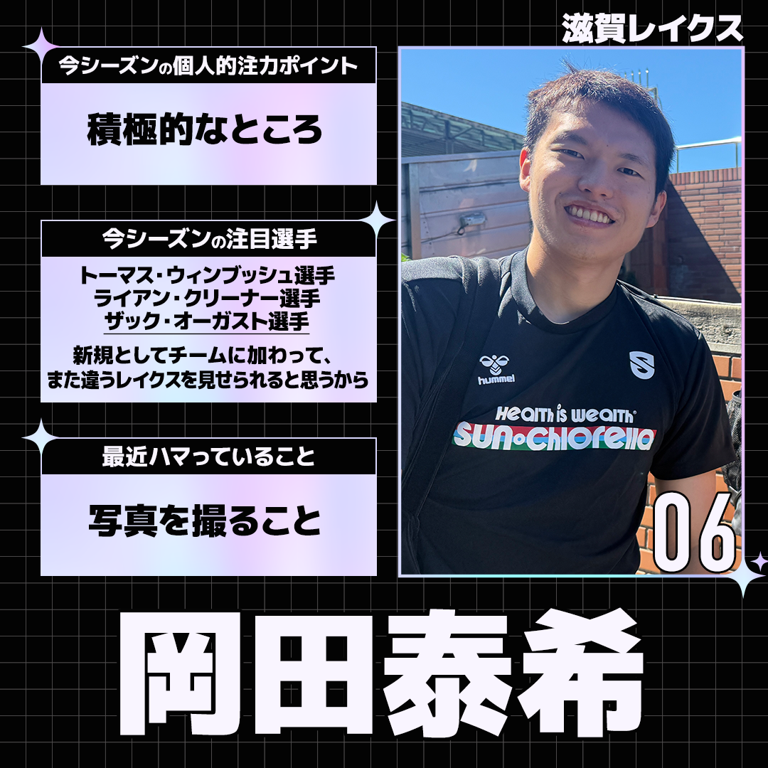 りそなグループ B.LEAGUE 2025-26 SEASONの開幕を目前に控えた選手たちにアンケートを実施。各選手から個性あふれる回答が届きました。今回は滋賀レイクスの選手たちの回答を紹介します。