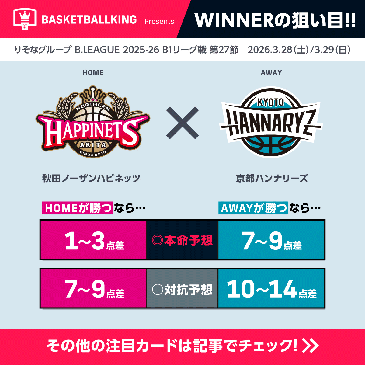 ※WINNER予想はバスケットボールキング独自の内容であり、独立行政法人日本スポーツ振興センターとの関連性はございません