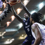 神戸ストークスは岩手ビッグブルズを相手に、最大16点差をひっくり返して逆転勝利。試合終了残り21秒に3ポイントシュートで1点差まで詰め寄られたものの、そのまま逃げきった。
