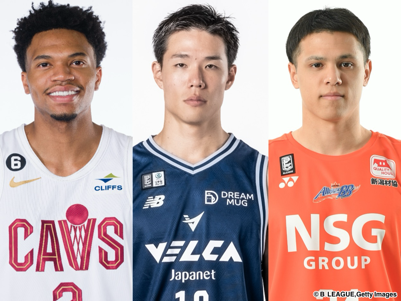 (左から)ピケット、馬場、田中[写真]=B.LEAGUE,Getty Images