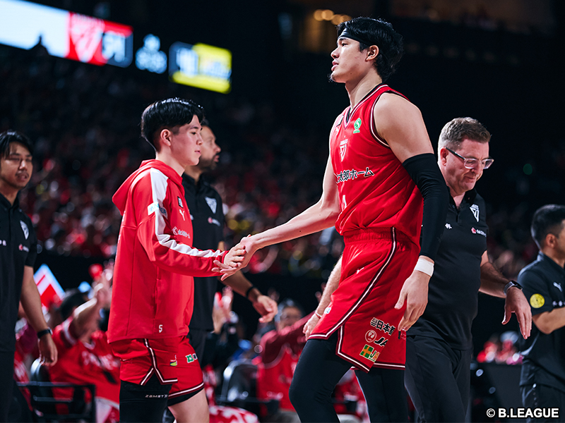 前半終了時点で取材に応じたホーバスHCは、「ユウタ・ワタナベも元気で、ヘルシーにプレーしているからうれしい」と笑顔。万全の調整を経てBリーグ2年目に臨んでいる渡邊の状態について、「彼はBリーグのプレーがだんだんわかってきた感じ」と、環境への適応が好パフォーマンスにつながっているとの見解を示し、「体を見てみたらすごくいい感じ」と、ポジティブな言葉を続けた。