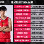 B1リーグ戦の第20節において達成が期待される個人記録をバスケットボールキング編集部がピックアップ。今節は日本代表経験を持つベテラン2人に注目したい。張本天傑(名古屋ダイヤモンドドルフィンズ)は今シーズン1試合平均6分50秒とプレータイムが限られているが、前節に3Pシュート5本中3本を決め、B1通算400回成功の大台が目前まで迫ってきた。また、竹内公輔(宇都宮)は通算15人が達成してきた2500リバウンドまであと8としている。こちらもシーズンを通して10分前後のプレータイムのなかチームを支える活躍を見せており、今節中に節目を迎える可能性がありそうだ。
