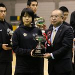 桜花学園高校、山本キャプテンから日本協会、伊藤専務理事事務総長へ優勝杯が返還された[写真]=圓岡紀夫