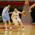 中津北は、170センチ台の選手をずらりとそろえた大型チーム、土浦日大に対し、持ち前の粘り強さを見せて善戦。ファーストシュートを決められるも、攻守に渡り小気味よく動き、高さに勝る相手に対して、ボールをチップアウトしてこぼれたボールに跳び込んでいくアグレッシブな試合を展開する。この元気ではつらつとしたチームの司令塔はキャプテン畑中みつみだ。身長145センチとコート上でも一際小柄な畑中だが、コート上で大きな声で指示を出し、チームメイトを鼓舞し続ける。チームを率いる大津留コーチは「いいね!いいね!」、「それも成功の1つ!」と常にポジティブに声をかけ続ける。我慢強く付いていく中津北だったが土浦日本大のキャプテン山下涼香にうまくインサイドを攻められると徐々に点差が開き、第2クォーターを終えて20-34。14点のビハインドで前半を終えた。