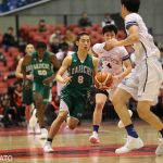 帝京長岡高校(新潟県)と飛龍高校(静岡県)はロースコアな展開の中、終盤まで接戦を繰り広げた。第2クォーターで12-5と帝京長岡がリードし、前半終了時には27-19と8点をリード。後半になって点差を詰めていった飛龍は、第3クォーター残り6分41秒で伊東潤司の3ポイントシュートが決まり、27-28と逆転する。そこから互いにリードチェンジを繰り返し、第4クォーター残り3分24秒に55-55のタイスコアに。ベスト4入りを懸けた戦いに決着を付けたのは、帝京長岡の3年生、佐野翔太だった。そこからフィールドゴール1本とフリースロー2本を見事に沈めて4得点。最終スコア59-55で帝京長岡が激戦に終止符を打った。