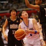 試合は、序盤からディフェンスで激しいプレッシャーをかけていった桜花学園が優位に進めていく。八雲学園の奥山理々嘉に対しては中でボールを持たせまいと、外に押し出すようにし、そこから出されるパスを狙う形で対応。この作戦が奏功し、奥山は前半わずか6得点に抑え込まれてしまう。桜花学園では藤本愛瑚が18得点(試合全体で24得点)、山本麻衣(同24得点)が13得点を挙げ、前半は49-25と24点のリードを奪う。
