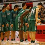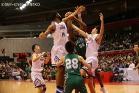 河村の果敢なドライブでディフェンスを引き付けて、ゴール下のバムアンゲイ・ジョンサンへのパスというコンビネーションで優位に試合を進める福岡第一。しかし、リバウンドを奪ってからの速攻というチームのストロングポイントを福岡大大濠に上手く消され、いつもの小気味よいトランジッションバスケットボールに持ち込むことができない。