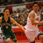 この重要な舞台で両チームを通して輝いていた選手の一人が、福岡第一の1年生ポイントガード河村勇輝だ。河村はクイックネスあふれるプレイでメインコートを駆け巡り、福岡大大濠の前線からの厳しいプレスをかいくぐる。また広い視野で、再三にわたりコートの端から端までロングパスを通す技術と度胸を見せた。