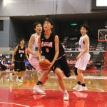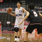 第2クォーター序盤は連続得点を許すも、速い展開から加点して応戦。開始3分20秒からは西江が立て続けに3ポイントをマークして点差を12点に拡大する。中盤以降は松本茜(2年)、黒澤楓(3年)のベンチメンバーの活躍もあり43-27でハーフタイムへ。