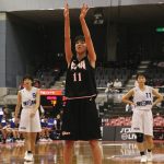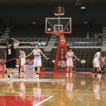 しかし、第3クォーターに入ると英和の反撃に遭い計30失点を喫する。立ちあがりから小林美穂、石橋玲奈、大熊彩葵(いずれも2年)らに決められ、残り5分を切った時点で48-43。中盤以降は点の取り合いとなるも、岡本華音(2年)に連続3ポイントを浴びて一時3点差まで詰め寄られた。それでも、終盤は星を中心に再び引き離し、64-57で最終クォーターへ突入した。